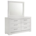 • Benjara Ivon Wide Dresser with Mirror, 6 Drawers, White High Gloss, Metal image - 1