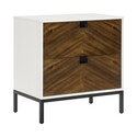 • BenJara Jem 30 Inch Nightstand, 2 Drawers, Pocket Handles, Brown and White Wood image - 1
