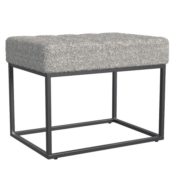 • Benjara Kai Ottoman Footstool, Heather Gray Yarn Cream Boucle, Black, 22 Inch image - 1