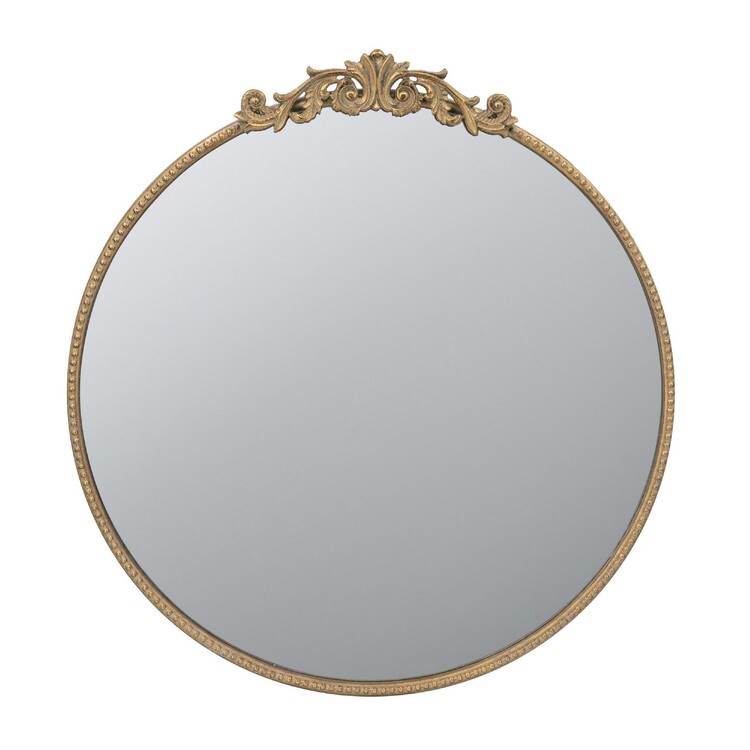 • BenJara Kea 32 Inch Vintage Round Wall Mirror, Gold Metal Frame, Baroque Design image - 1