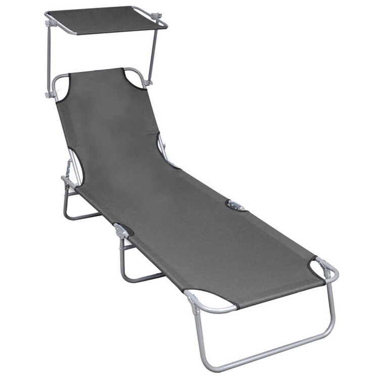 • BenJara Keli Folding Chaise Lounger with Sun Canopy, Gray Aluminum, 74 Inch image - 1