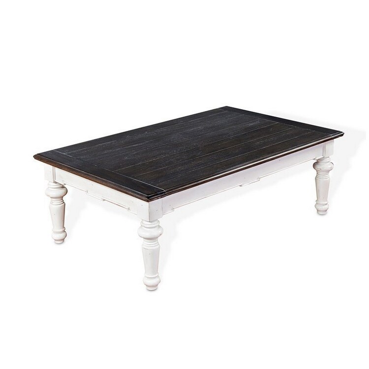 • Benjara Kiyan Coffee Table, White, Dark Brown Mahogany, Rectangular 52 Inch image - 1