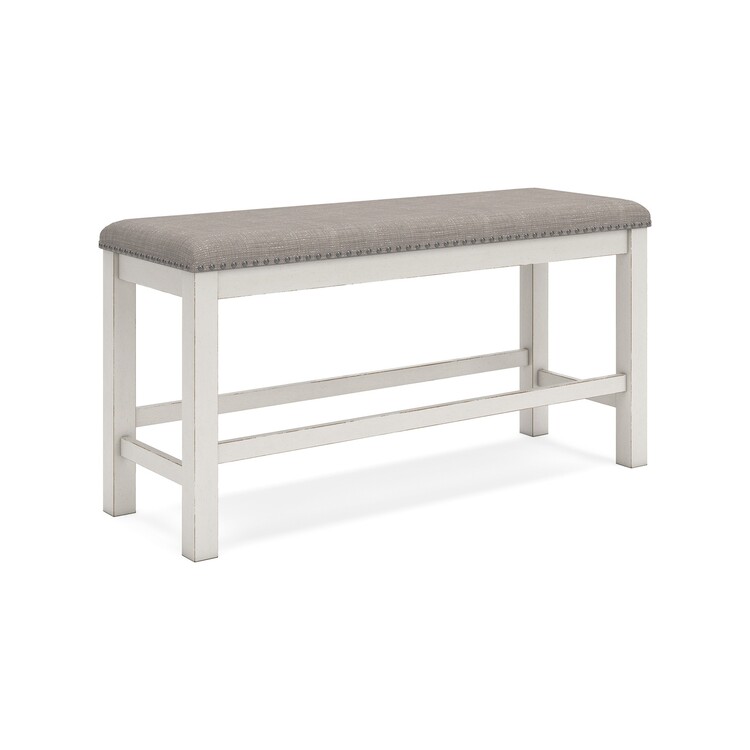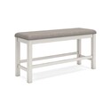 • BenJara Lea Counter Height Dining Bench, Classic White Wood, Gray Polyester image - 1