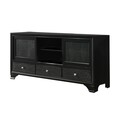 Benjara LED 67 Inch TV Media Entertainment Console, 2 Barn Doors, Black Finish