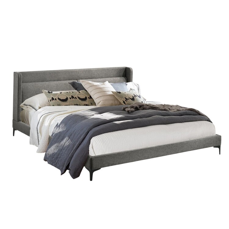• BenJara Legend Gray Fabric Queen Platform Bed with Black Metal Legs image - 1
