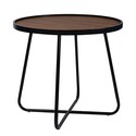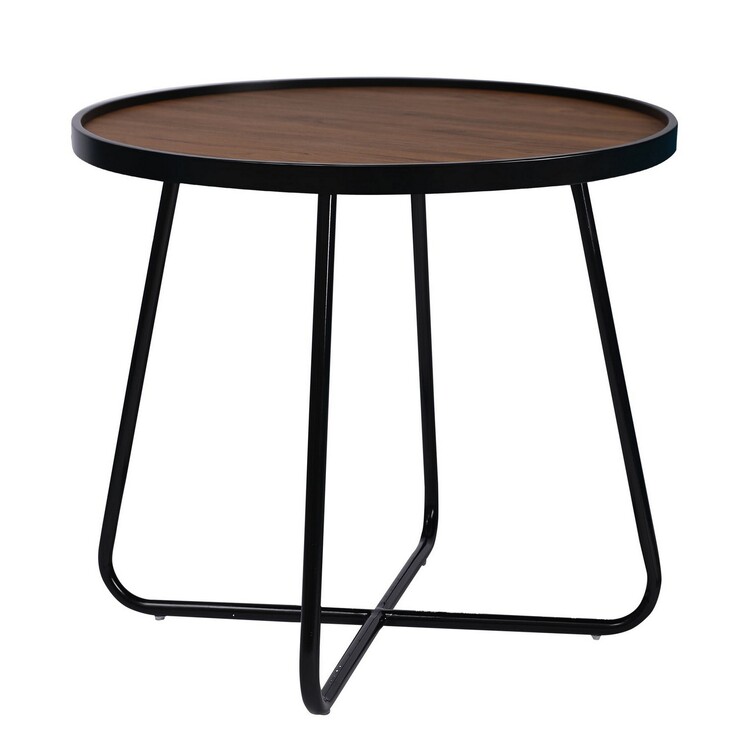 BenJara Lei 24 Inch Side End Table, Round Top, Black Metal Cross Base, Walnut Brown