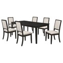 • Benjara Lela 7pc Extendable Dining Table and 6 Chair Set, Black and Ivory image - 1