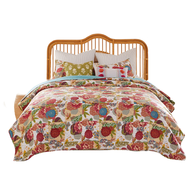 • Benjara Lewi 2pc Twin Size Quilt Set, Bright Colorful Floral Pattern, Cotton image - 1