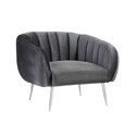 • Benjara Lida 34 Inch Accent Chair, Gray Channel Tufted Velvet, Tapered Metal Legs image - 1