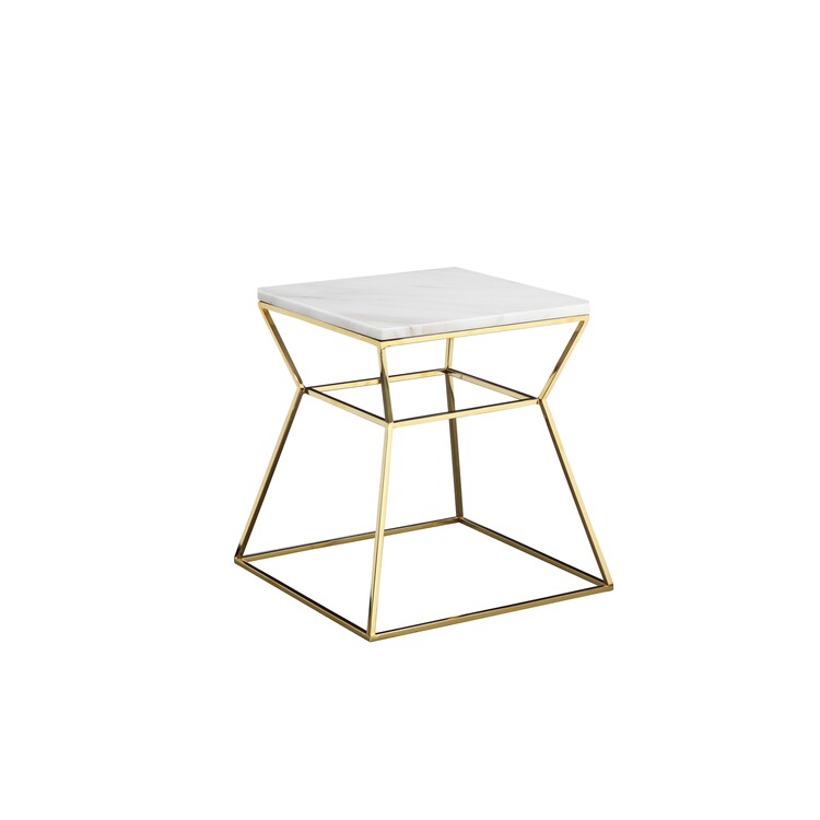 BenJara Lio 18 Inch Side End Table, White Marble Top, Gold Open Hourglass Frame