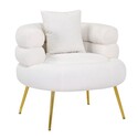 • BenJara Lisa 34 Inch Accent Chair, Barrel Shaped, Soft Ivory Teddy Upholstery, Gold image - 1