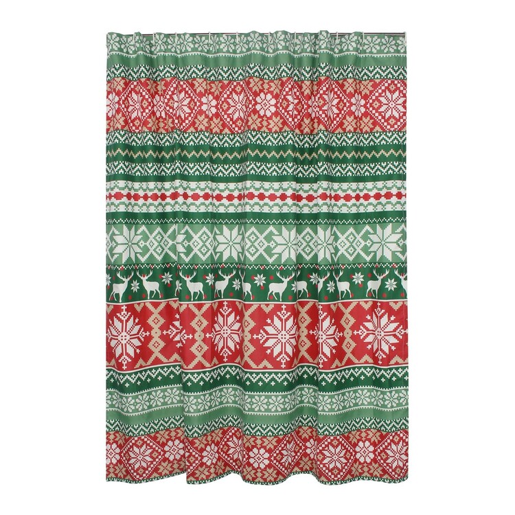 • Benjara Live 72 x 72 Inch Microfiber Shower Curtains, Festive Winter Print image - 1