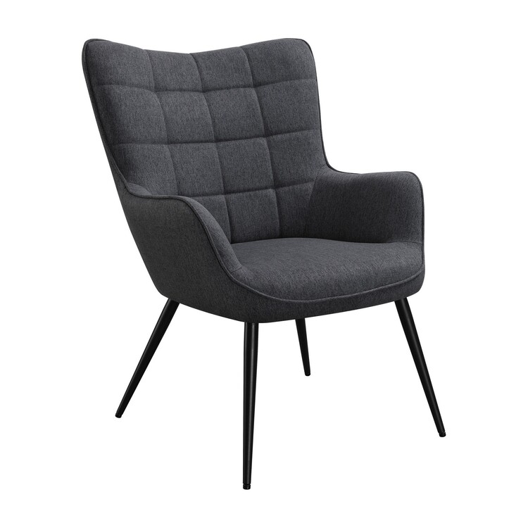 • Benjara Liz 29 Inch Retro Accent Armchair, Grid Tufted Wingback, Gray Woven Fabric image - 1