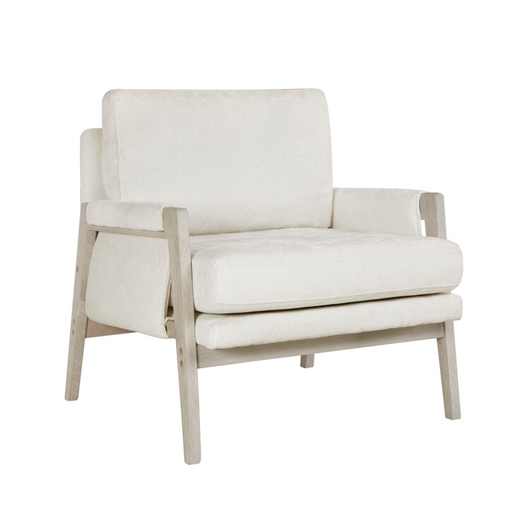 • Benjara Mao Accent Armchair, Removable Cushion Cover, Soft Ivory Chenille image - 1