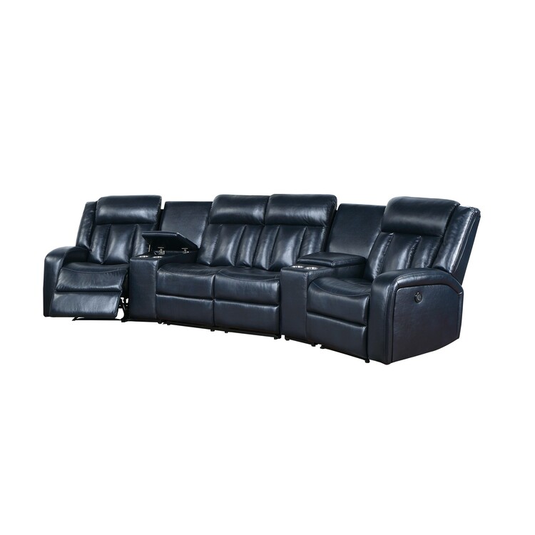 • Benjara Max 5 Piece Manual Recliner Sectional Set, Vegan Faux Leather, Navy Blue image - 1