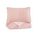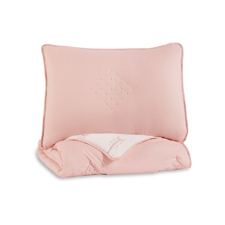 Benjara Maxie Twin Size Comforter Set with Sham, Pink, White, Polyester, Polyfill