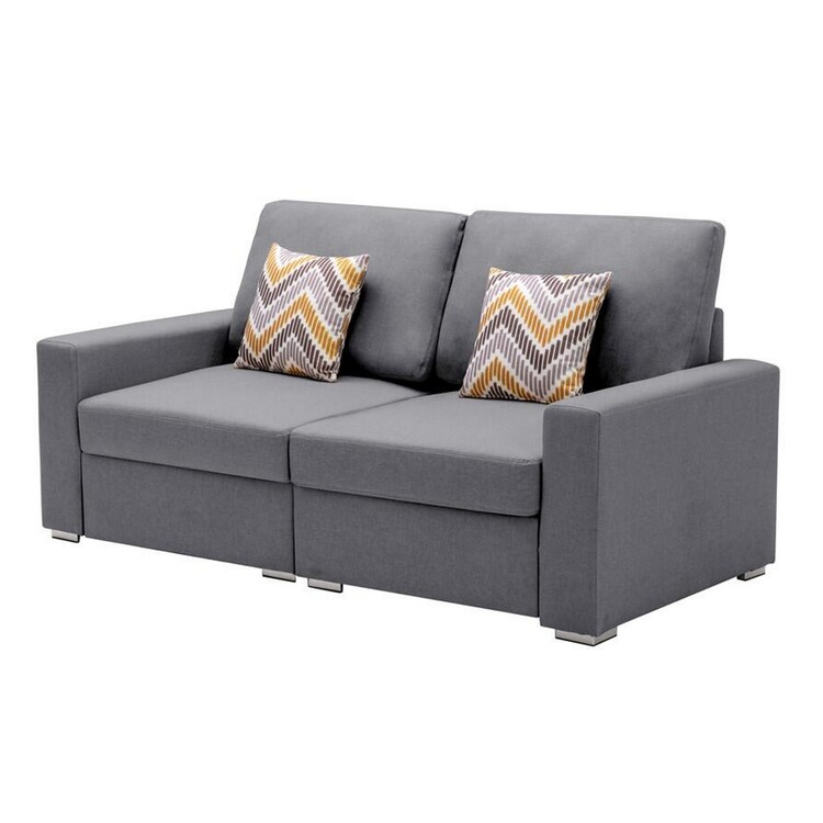 Benjara Meg 67 Inch 2 Piece Modular Sofa Set, Modern, 2 Accent Pillows, Light Gray