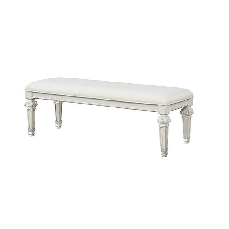 • Benjara Miamy Bench, Cream White Wood Frame, Textured Fabric, 55 Inch image - 1