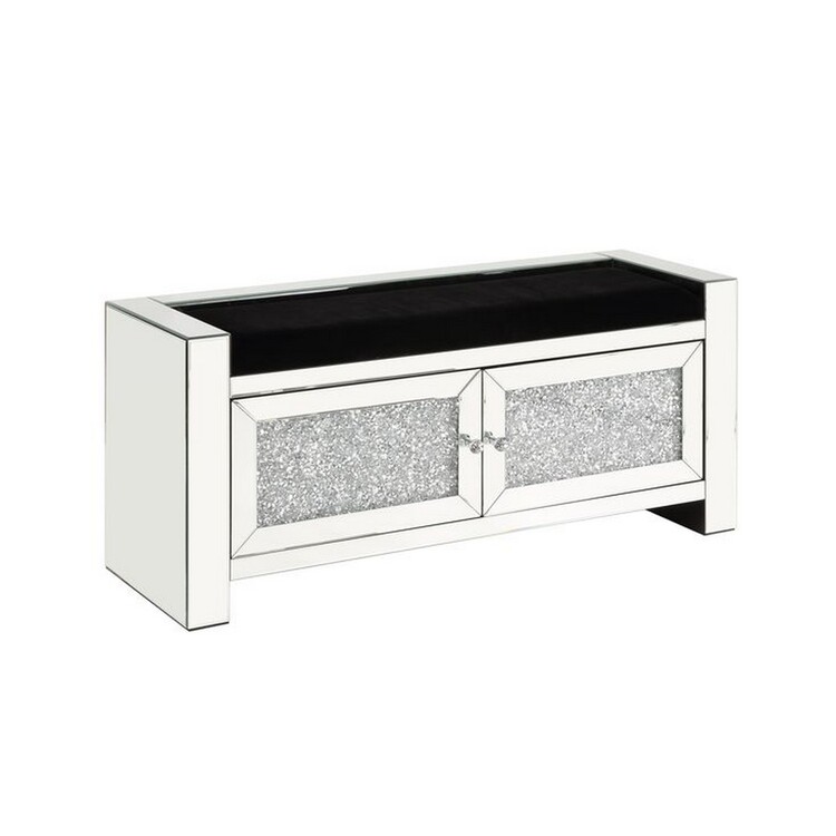 • Benjara Mirrored Bench with Faux Diamonds and 2 Cabinets, Silver image - 1
