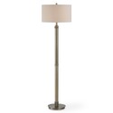 • Benjara Modern Floor Lamp, White Linen Drum Shade, Brass Metal Pole, Round Base image - 1