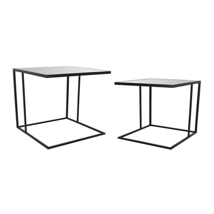 • Benjara Modern Plant Stand Side Table Set of 2, Square Marble Stackable Black Metal image - 1