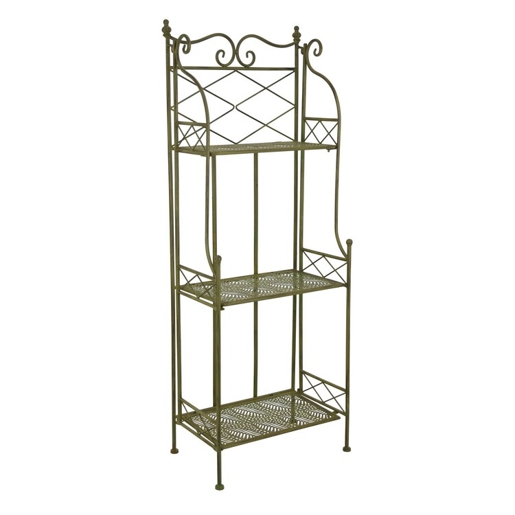 • Benjara Monty Plant Stand, 3 Tier Shelves Classic Scrolled Green Metal 44 Inch image - 1