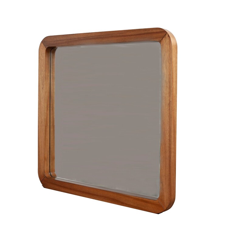 • Benjara Neo 37 x 40 Rectangular Dresser Mirror, Mahogany Wood, Rich Honey Brown image - 1