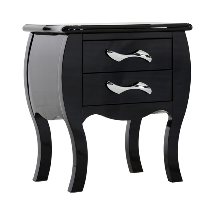 • Benjara Nial 24 Inch Nightstand, 2 Drawers, Smooth Black Lacquer Wood Finish, Steel image - 1