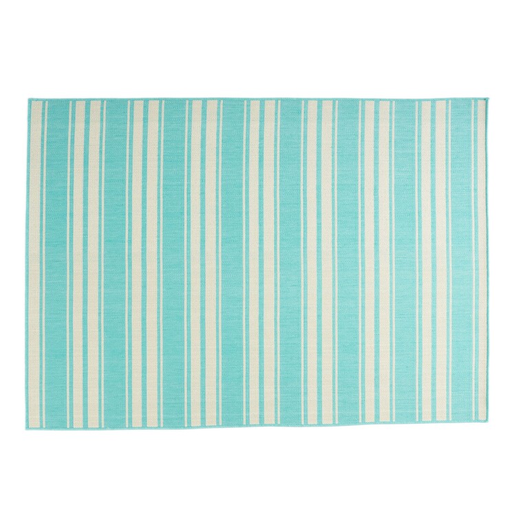 • BenJara Nina 5 x 7 Area Rug, Teal, Ivory Indoor Outdoor, Handcrafted Stripes image - 1