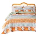 • Benjara Nite 3pc King Quilt Set, Calico Floral Songbird Pattern, Cotton Microfiber image - 1