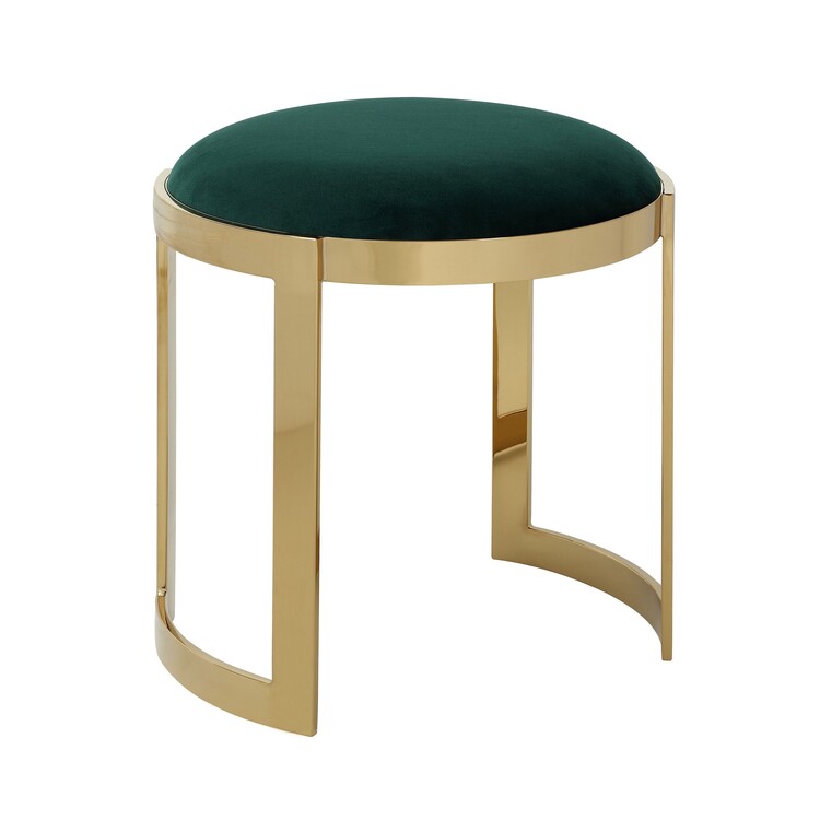 BenJara Niyo 19 Inch Accent Stool Ottoman, Round Cushioned Green Velvet Seat, Gold