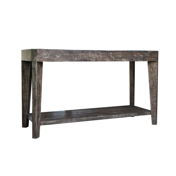 BenJara Noa 50 Inch Sofa Console Table, Solid Pine Wood, Distressed Brown, 1 Shelf