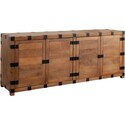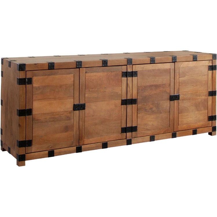 • Benjara Ozy Sideboard Buffet Cabinet w 4 Doors, 76 Inch Oak Brown Mango Wood image - 1