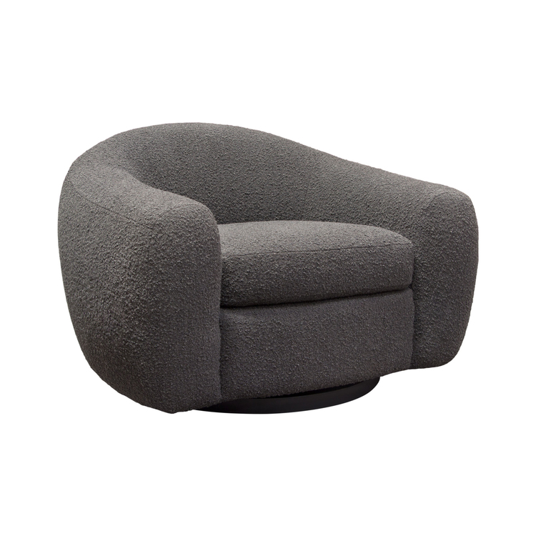 • Benjara Pasy Round Swivel Chair, Charcoal Black Boucle Textured Fabric, Metal Legs image - 1