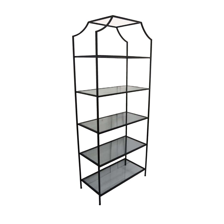• Benjara Pete Display Stand Rack, 5 Glass Shelves, Arched Black Metal 71 Inch image - 1