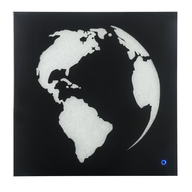 • BenJara Rectangular World Wall Art with LED, Black and Silver image - 1