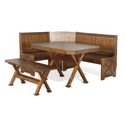 • Benjara Reggie 4pc Breakfast Nook Dining Table Set, Corner Storage Bench Brown image - 1