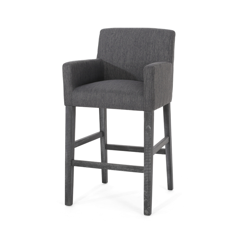 • Benjara Rekah Barstool Chair, Charcoal Fabric and Wood Frame, Soft Cushioning image - 1