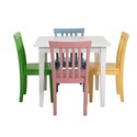 Benjara Reyi 5pc Kids Childrens Dining Table and 4 Chair Set, Colorful Wood