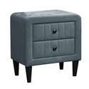 • BenJara Rheo Nightstand, 2 Drawer, 22 Inch Slate Gray Brushed Linen Upholstery image - 1