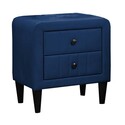 • BenJara Rheo Nightstand, 2 Drawers, 22 Inch Upholstered in Navy Blue Velvet image - 1