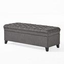 • Benjara Rhya Storage Bench, 50 Inch Button Tufted Plush Seat, Soft Gray Fabric image - 1