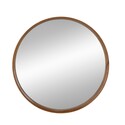 • BenJara Roe 40 Inch Round Accent Mirror, Brown Pine Wood Frame, Wall Hung image - 1