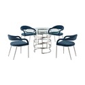 • Benjara Rorry Morgie 5pc Glass Dining Table Set, Silver Steel Base, 4 Blue Chairs image - 1