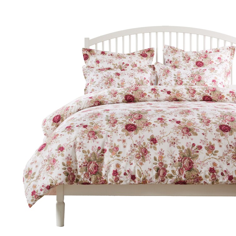 • Benjara Rosle 3pc King Duvet Cover Set with 2 Shams, Ivory and Red Floral Cotton image - 1