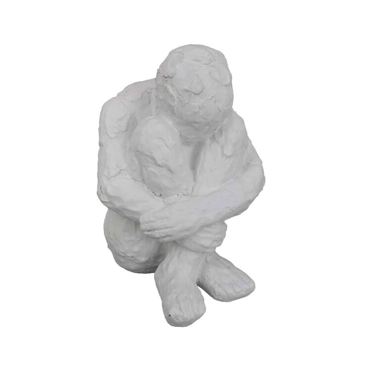 • Benjara Roy Abstract Contemplative Man Figurine, White Resin Art 15 Inch image - 1
