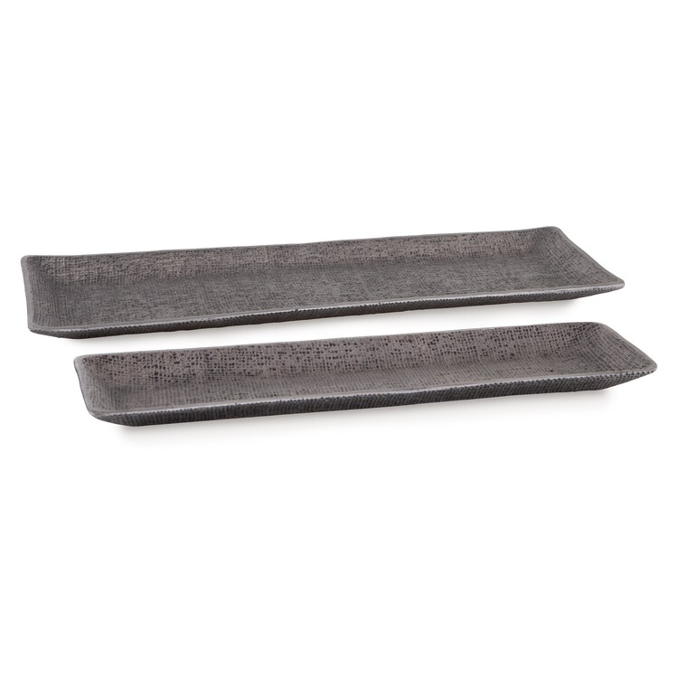 • BenJara Rumi Decorative Tray Set of 2, Rectangular, Cast Aluminium, Pewter Gray image - 1