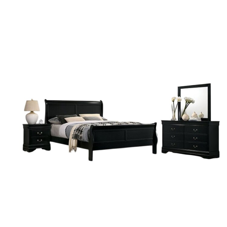 • Benjara Ryla 4pc Queen Bedroom Set with Nightstand, Dresser, Mirror in Classic Black image - 1