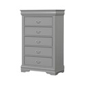 • BenJara Ryla Tall Dresser Chest, 5 Drawers, Metal Handles, Light Gray Solid Wood image - 1