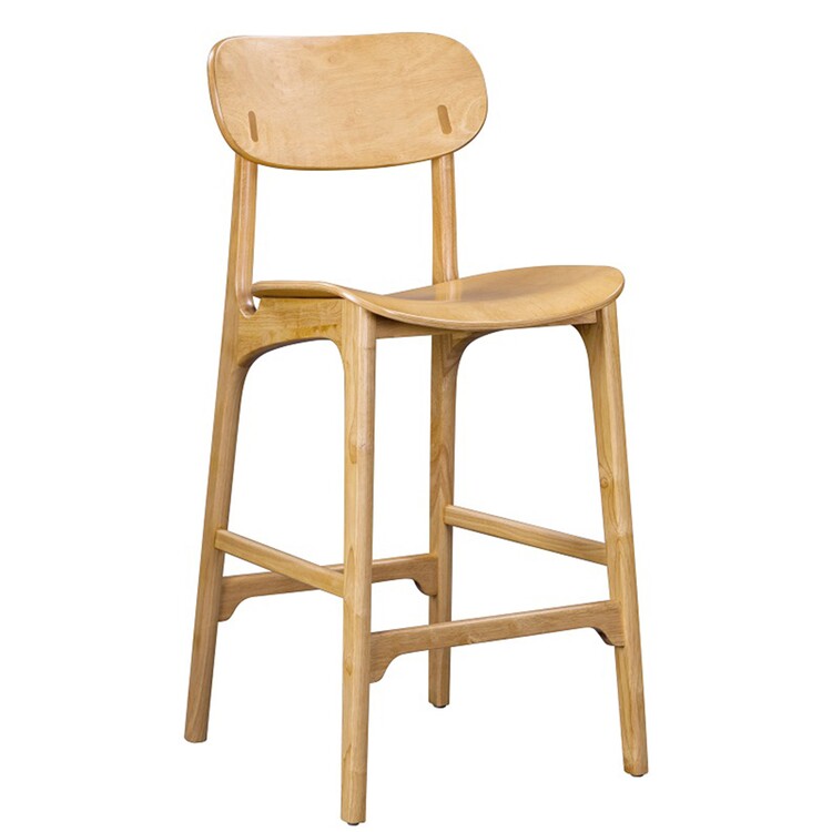 • Benjara Seln 30 Inch Barstool Chair, Curved Seat, Open Back, Light Brown Wood image - 1